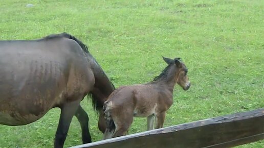 Дождь в горах, такой милый маленький жеребенок. Отдых в Горном Алтае