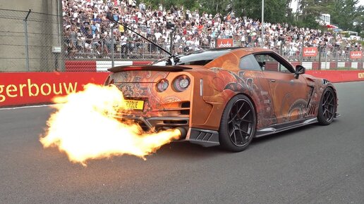 Nissan GT-R R35 крутой тюнинг машины и и жёсткие выстрелы выхлопа