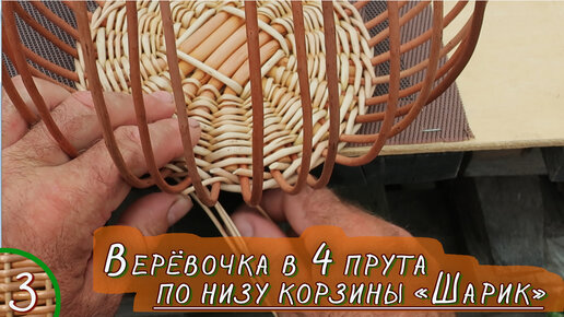 3+ Плетение верёвочки в 4 прута по низу корзины. 3 серия сериала: Плетение корзины "Шарик"