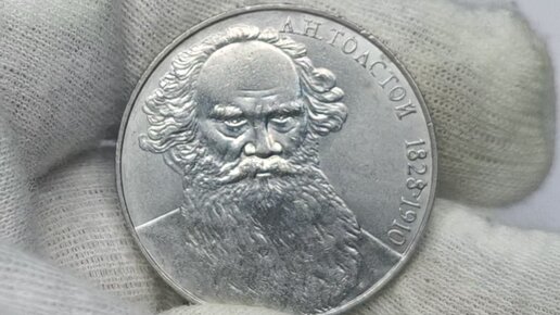 Цена более 200000 рублей. 1 рубль 1988 года. Лев Толстой. ММД. " Злой" и "Добрый" портрет. Ошибка в дате.