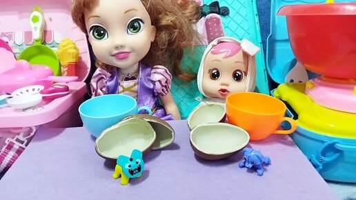Пупсики готовят кушать для мамы. Открываем с ПУПСИКАМИ Киндер Сюрприз. Как мама -куклы пупсики