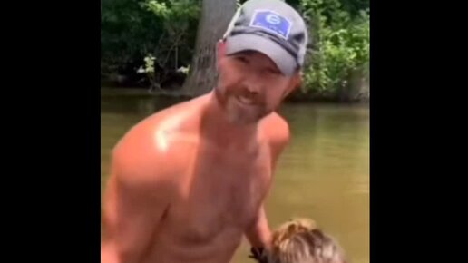А мужику видимо страшно-вдруг укусит!😂