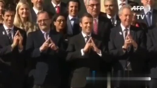 Масоны не стясняясь демонстрируют свои знаки на весь мир... Сатанисты. И Макрон в первых рядах
