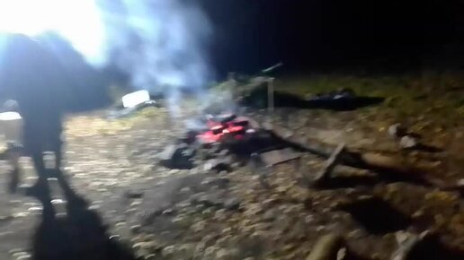 Туристы ночью на берегу реки Чусовой