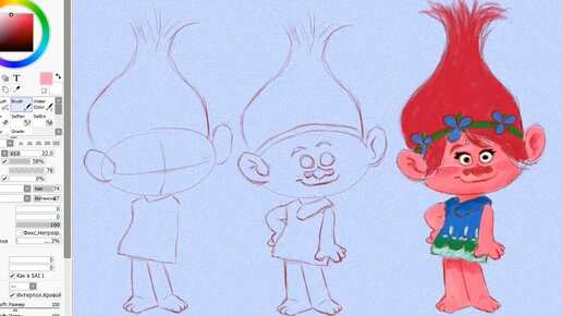 Как нарисовать персонажа Розочку из мультфильма «Троли».