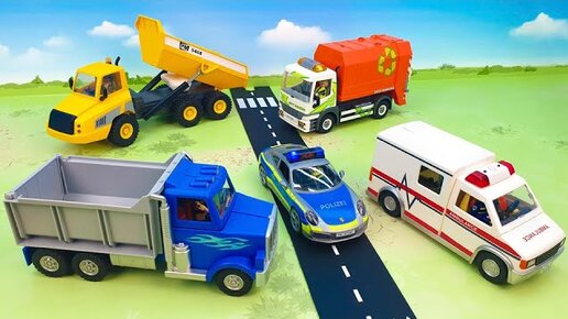 Самосвал Бульдозер Грузовик Мусоровоз Полиция Пожарная - много новых машинок для мальчиков.