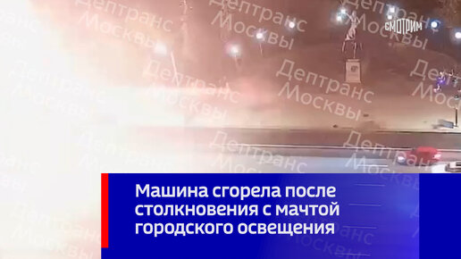 Машина сгорела после столкновения с мачтой городского освещения