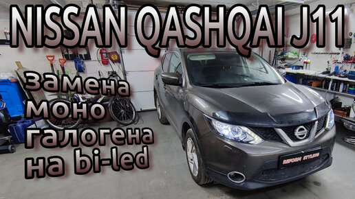 NISSAN QASHQAI J11 замена моно галогенных на bi-led модули