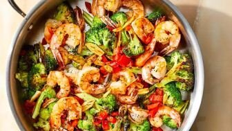 Креветки и брокколи с чесноком в одном горшке