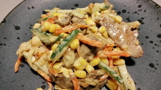 Вы полюбите этот рецепт салата с куриной печенью и свежим огурцом