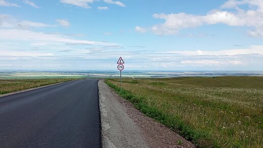 Просторы Алтая. С одной стороны горы, с другой - степи и поля. Недалеко от поворота на Белокуриху.