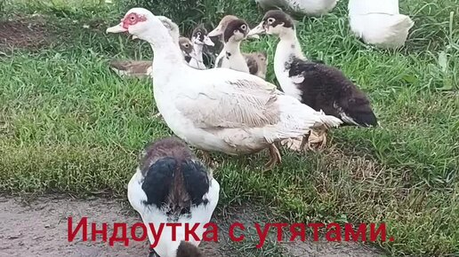 Индоутка (мускусная утка) с утятами. Утятам 30 дней.