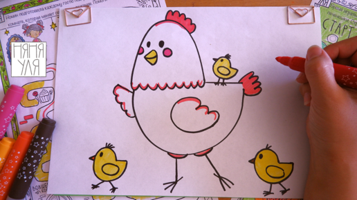 Как нарисовать милую КУРИЦУ и цыплят поэтапно для детей | Рисуем животных ФЕРМЫ и деревни | Няня Уля