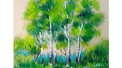 🌿🌿🌿Берёзки. Рисунок гуашью на крафтовой бумаге.🌿🌿🌿