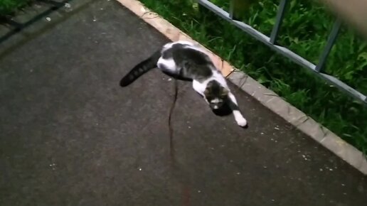 Пытаюсь помочь кошке, которая находится на трассе. Хочу её унести с дороги и покормить.