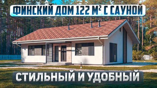 Одноэтажный дом в финском стиле. Обзор дома 122м2 с сауной.