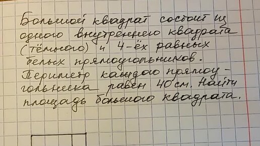 Математика 4 - 6 класс. Задача от Миши. Периметр прямоугольника и площадь квадрата