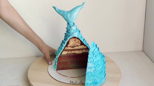 3Д торт ХВОСТ РУСАЛКИ | Сборка и украшение торта | Крем под мастику