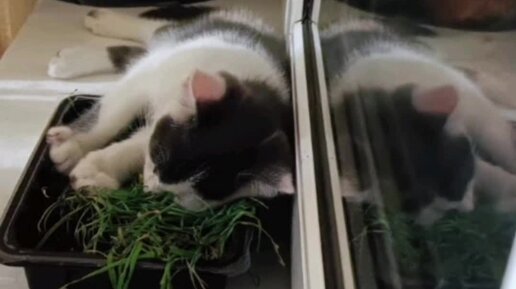 Котенок и овес в фото...