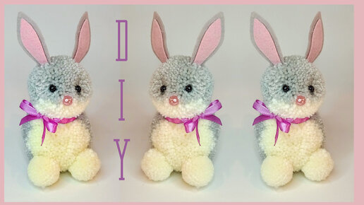 Как сделать зайчика из пряжи. Мягкая игрушка из помпонов своими руками.