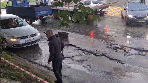 Дорожное полотно потрескалось в Иркутске после вчерашнего ливня