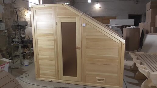 Видеообзор кедровой финской сауны со скошенным потолком
