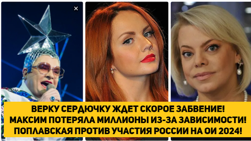 Верку Сердючку ждет скорое забвение!,Максим потеряла миллионы из-за зависимости!,Поплавская против участия России на ОИ 2024!