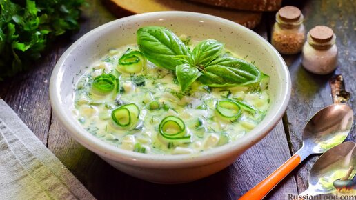 Аппетитный и свежий вариант холодного супа для знойного летнего обеда. Огуречный суп на ряженке с брынзой и фетой.
