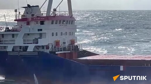 Кадры досмотра сухогруза "Сукра Окан", который шёл в украинский порт Измаил и был остановлен российскими военными в Чёрном море