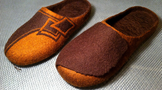 Валяю тапочки с двухцветным декором. Часть 2. Прокатала. Картина неприглядная, но все в норме.
