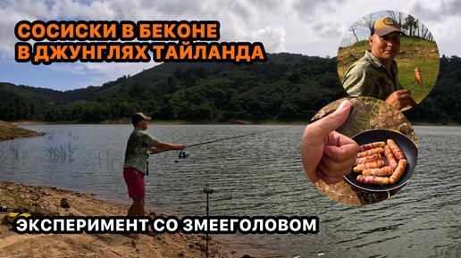 Жарим сосиски в беконе в джунглях | Короткое видео об отдыхе в Таиланде | Рыбалка на Пхукете | Рыбалка у озера | Змееголов на донку
