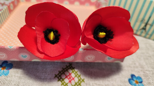 Мак полевой из атласной ленты, техника: канзаши. DIY | Satin Ribbon Flower Easy