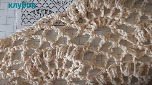 Ажурная сеточка с ракушками и пышными столбиками (крючок)