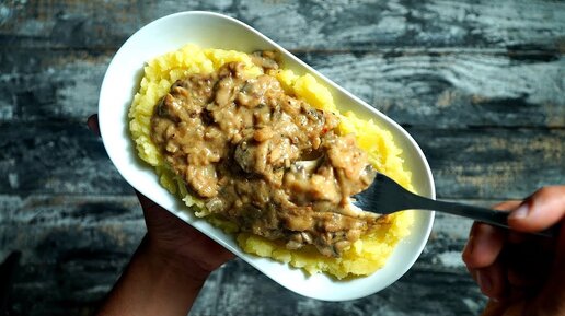 Грибной сливочный Строганов с картофельным пюре. От привычного и известного "Бефстроганов" тут практически ничего не осталось!