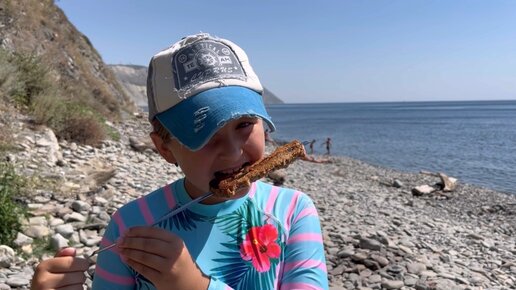 +34 🔥, 300 ступеней 🪜, море 🌊, сардельки и хлеб на угле 🥪, снорклинг 🤿, рыбалка 🎣, дельфины 🐬 - отличный день с любимой дочерью! 💗