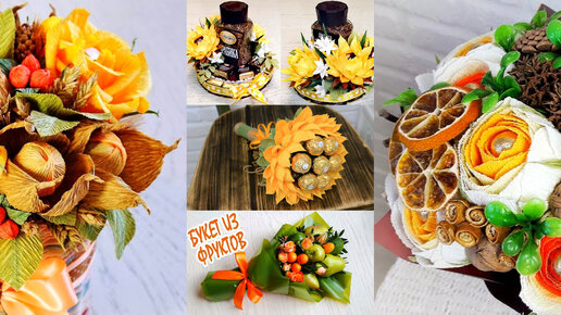 5 ИДЕЙ ОСЕННИХ букетов на 1 СЕНТЯБРЯ из конфет и фруктов своими руками