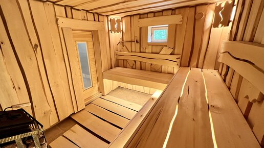Далее: Русская Баня 3,5х2 из полубревна ольхи. Что находится внутри парной. Обзор от А доЯ