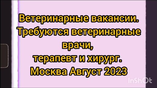 Ветеринарные вакансии. Спрос и предложение. Требуется ветврач терапевт и хирург. Август 2023