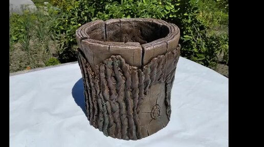 Эта вещь станет жемчужиной вашего сада. Вазон из цемента в виде пня, своими руками.