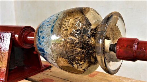 Стеклянная ваза из бревна в сочетание эпоксидной смолы и дерева. обработанная на станке.