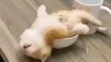 Кошка в чашке уснула