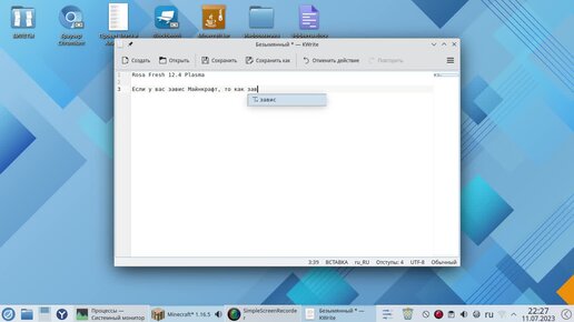 Если завис Майнкрафт - запускаем Системный монитор в Роса Фреш