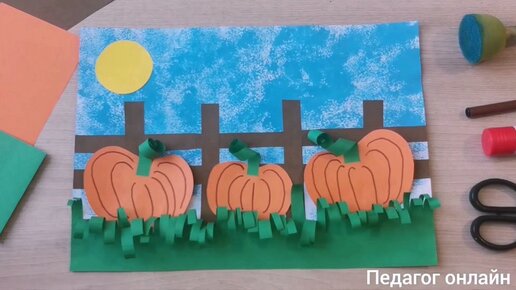 Осенняя поделка. Тыквы на грядке. Идея для творчества с детьми