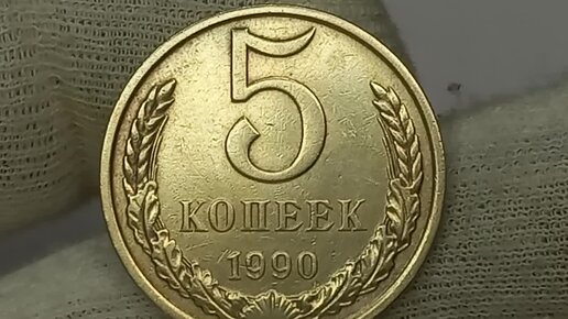 Стоимость более 100000 рублей! 5 копеек 1990 года. СССР.