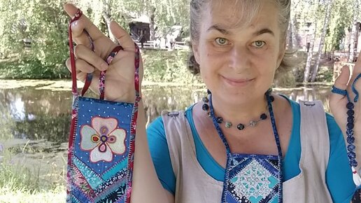 Лоскутные вышитые авторские украшения - бусы, ожерелья с куколками, подвески с кармашками