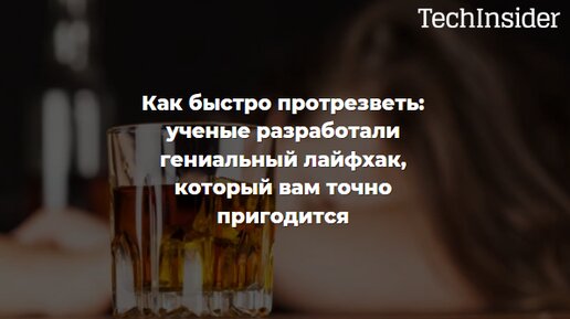 Как быстро протрезветь: ученые нашли простой способ