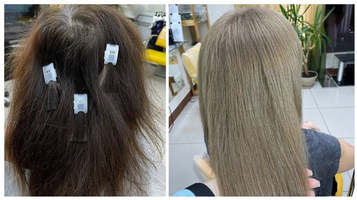 Декапирование: безопасное удаление темного цвета из волос, тонирование в натуральный пепельно русый. Осветление темных волос в русый