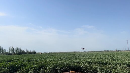 Российским журналистам продемонстрировали, как дрон поливает удобрениями хлопковые поля