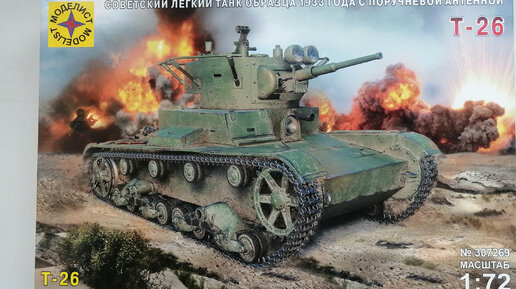 Обзор сборной модели «Т-26 - Советский легкий танк образца 1933 года с поручневой антенной» от компании Моделист (масштаб 1:72).