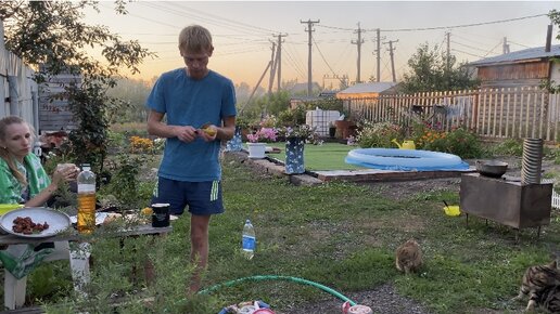 Ужин от Мужа. Муж готовит вкусный ужин на буржуйке / Спокойный Вечерний Влог